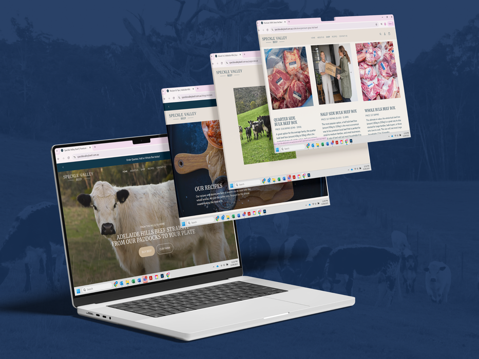 When the people (and the cows) are this genuine, our job’s the easy part. Speckle Valley Beef came to us with a big heart, a family story, and a herd of seriously photogenic cows and needed a brand and website that felt just like them: real, rustic, and proudly local.